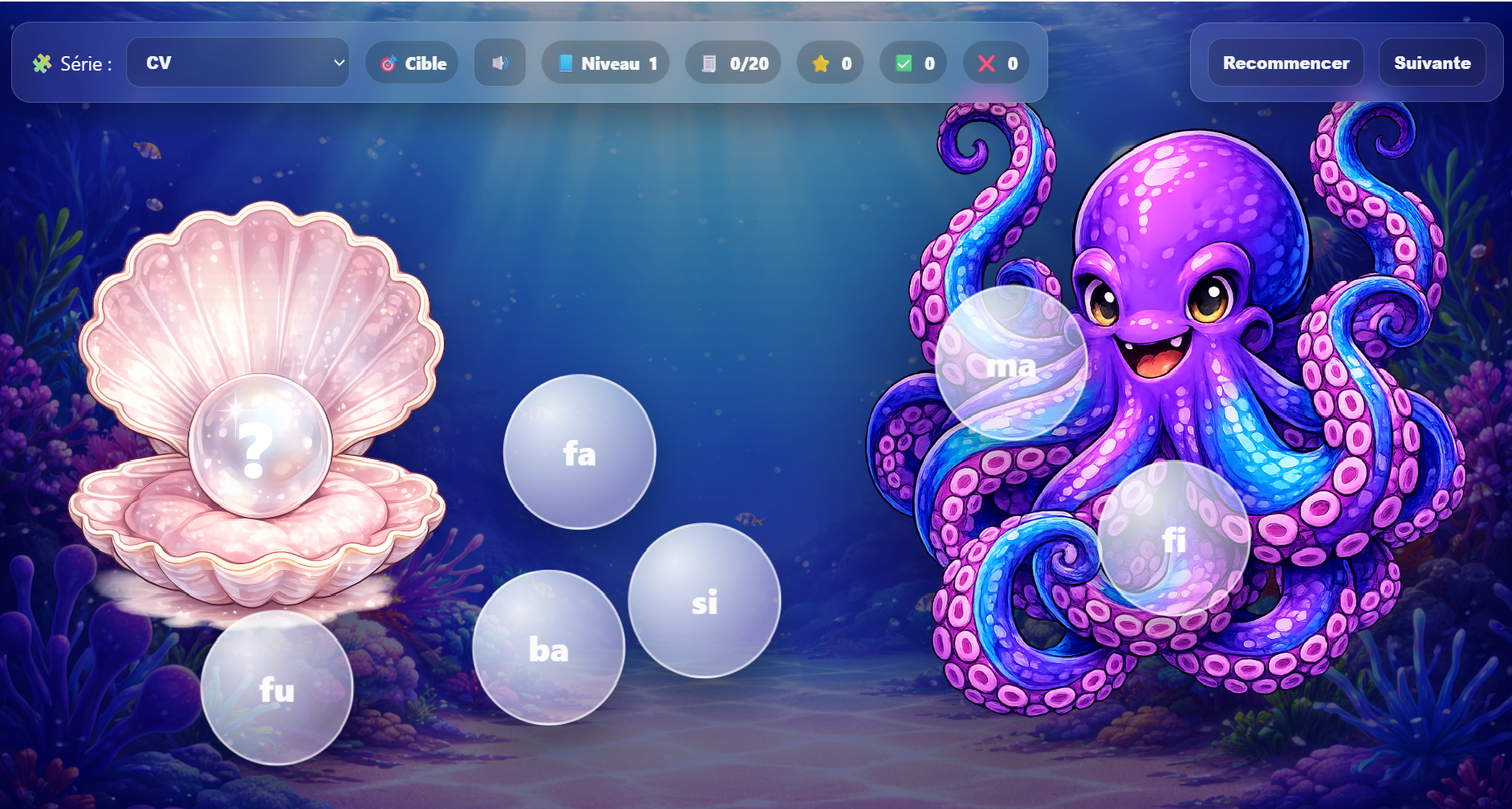 Écoute la syllabe cible 🎧 puis clique la bonne bulle.
